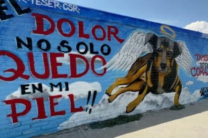 Plasman retrato del perrito Scooby en mural para crear conciencia ante el maltrato animal