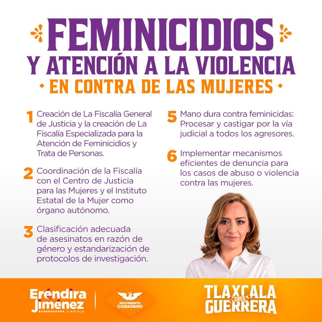 La candidata a la gubernatura de Tlaxcala por Movimiento Ciudadano quiere mostrar la fortaleza de la mujer, y su valor en la construcción y desarrollo del gobierno y la vida pública, pero desgraciadamente aún hay un alto nivel de violencia contra ellas, por lo que ideo una serie de propuestas encaminadas a proteger a la mujer de la violencia de género y los feminicidios.