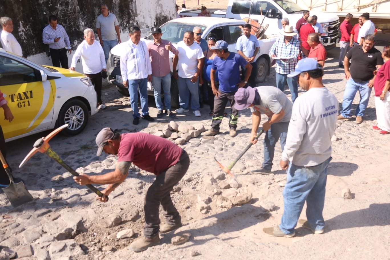 bacheo y reparación de vialidades y balizamiento, con el apoyo de personal de