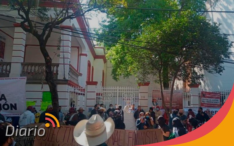 De manera casi simultánea, simpatizantes de Morena de Tabasco y un grupo mujeres con el rostro cubierto se manifestaron este jueves en la sede nacional de este partido en la Ciudad de México.